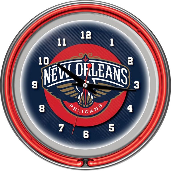 New Orleans Pelicans Chrome Double Ring Neon Wall Clock